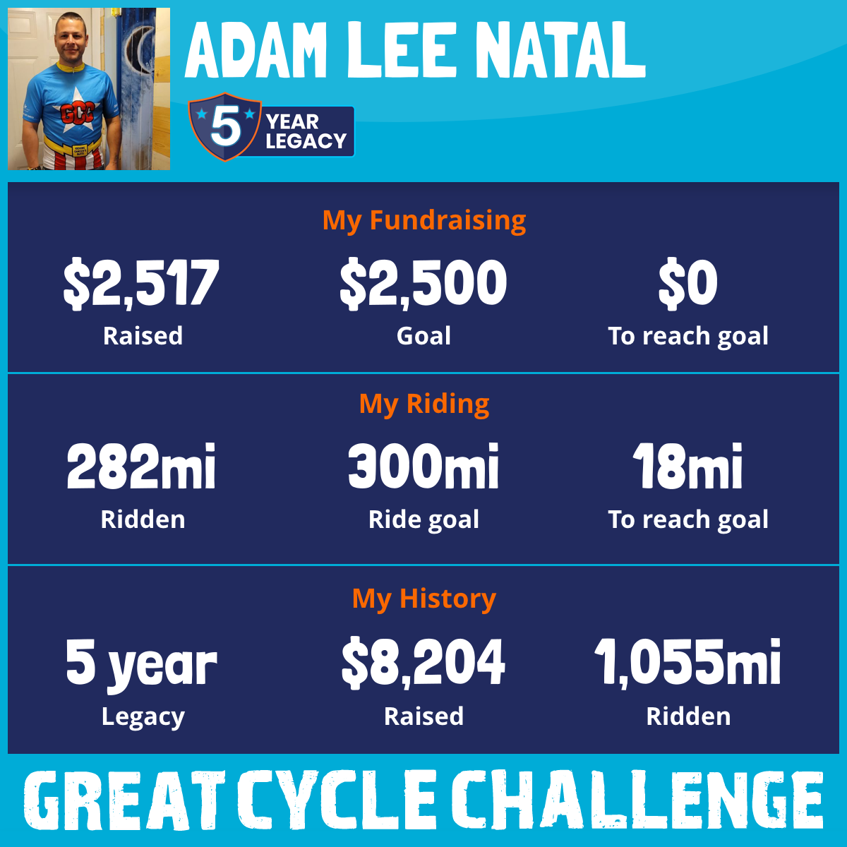 I just raised $2,500 to fight kids' cancer and achieved SUPERHERO LEVEL in the challenge! Thank you so much for your support.
