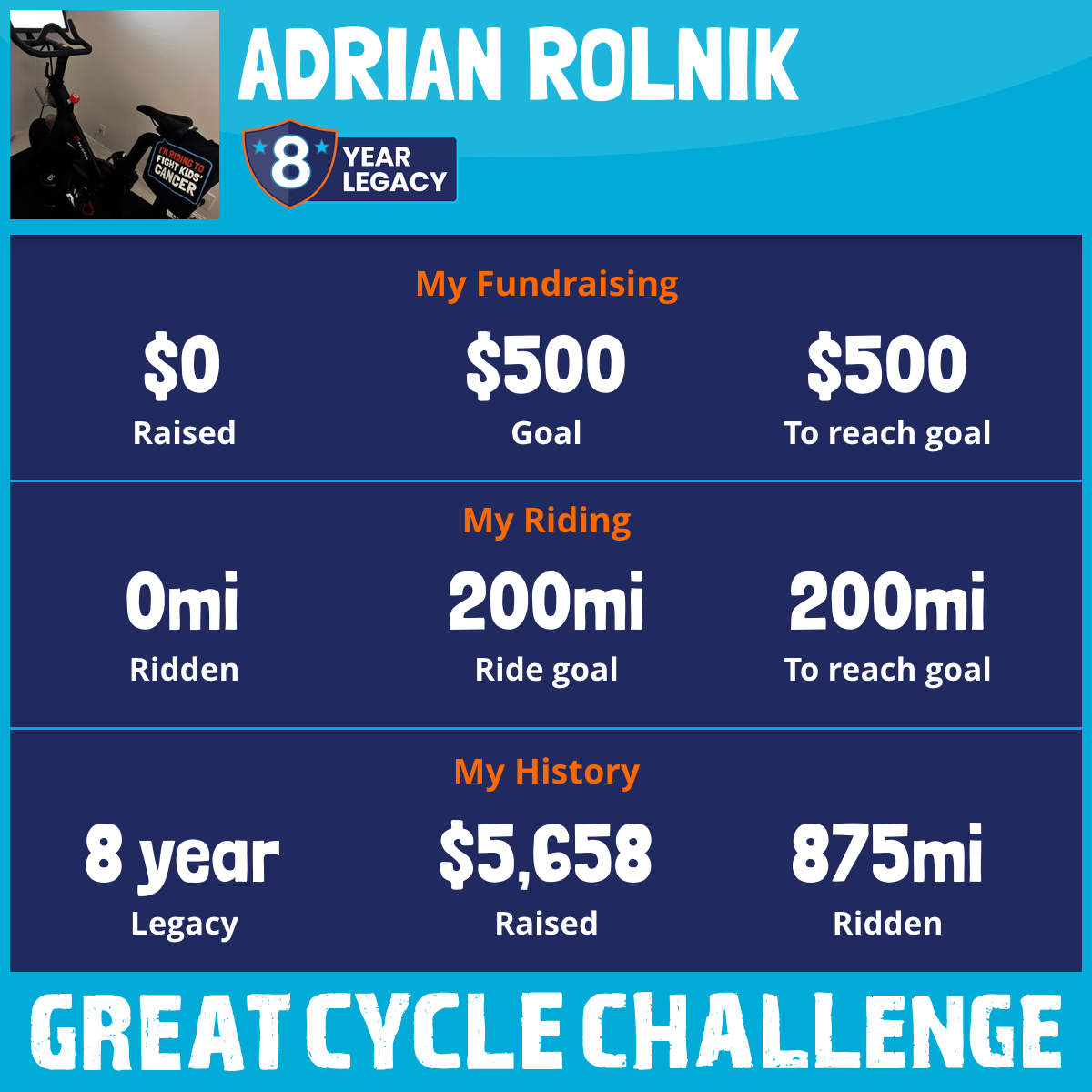 I am riding 200 mi to fight kids' cancer and save little lives. Please sponsor me to support my challenge!