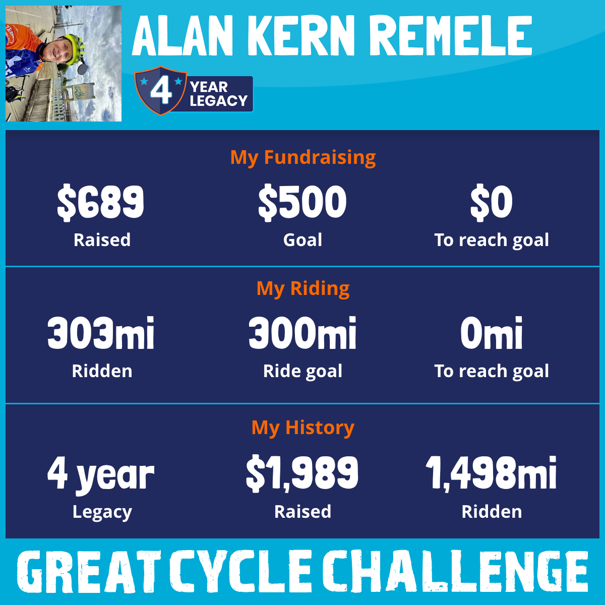 Thanks to your support and your much appreciated donations, I am riding the miles with a purpose and more miles than I thought possible in the month of September. Thank you to The Great Cycle Challenge for providing this great opportunity to ride for a great cause. There is still time to add to the total in case you missed and wanted to donate.