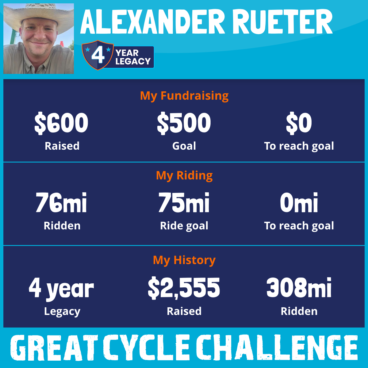 76 mi Ridden$600 Raised2025