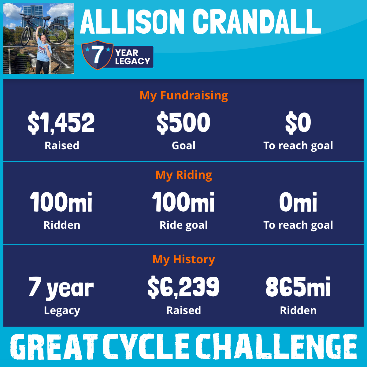 100 mi Ridden$1,452 Raised2025
