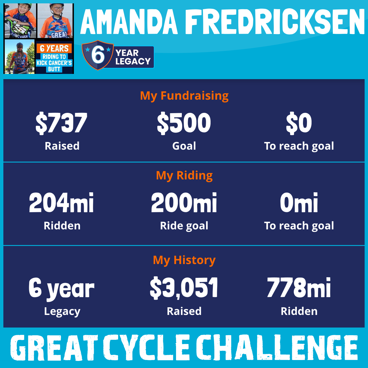 I am riding 200 mi in memory of My grandmas (Marjean & Pat) and friends (Phoxay & Barbie)). Please sponsor me and support my challenge to fight kids' cancer and save little lives.