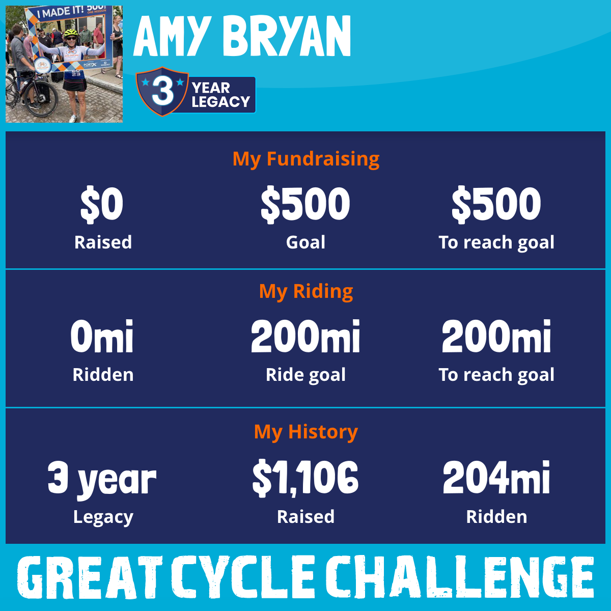 204 mi Ridden$1,106 Raised2023
