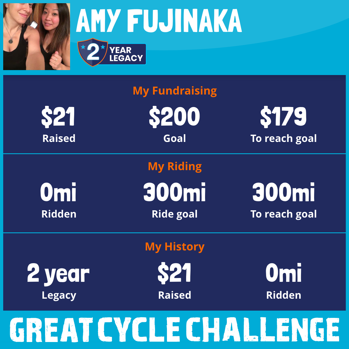 I am riding 300 mi in memory of my aunty, peggy. Please sponsor me and support my challenge to fight kids' cancer and save little lives.