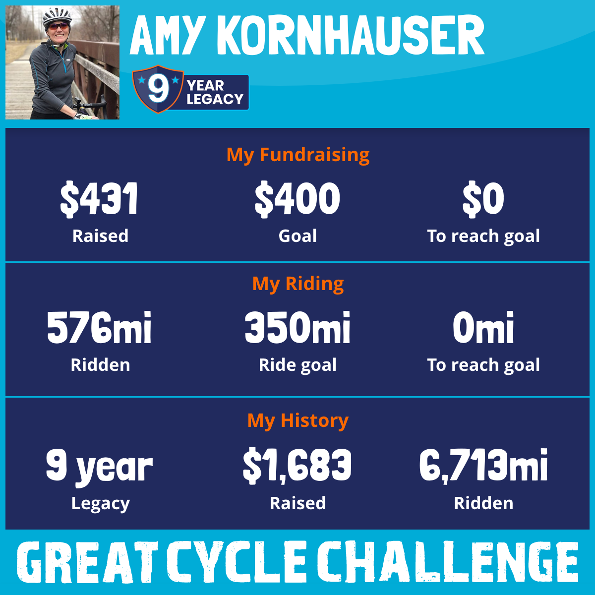 I'm riding in memory of K.C. Kays, our courageous hero from Lebanon. Since 2017, I've ridden over 6,000 miles to support kids' cancer research. Donate now!