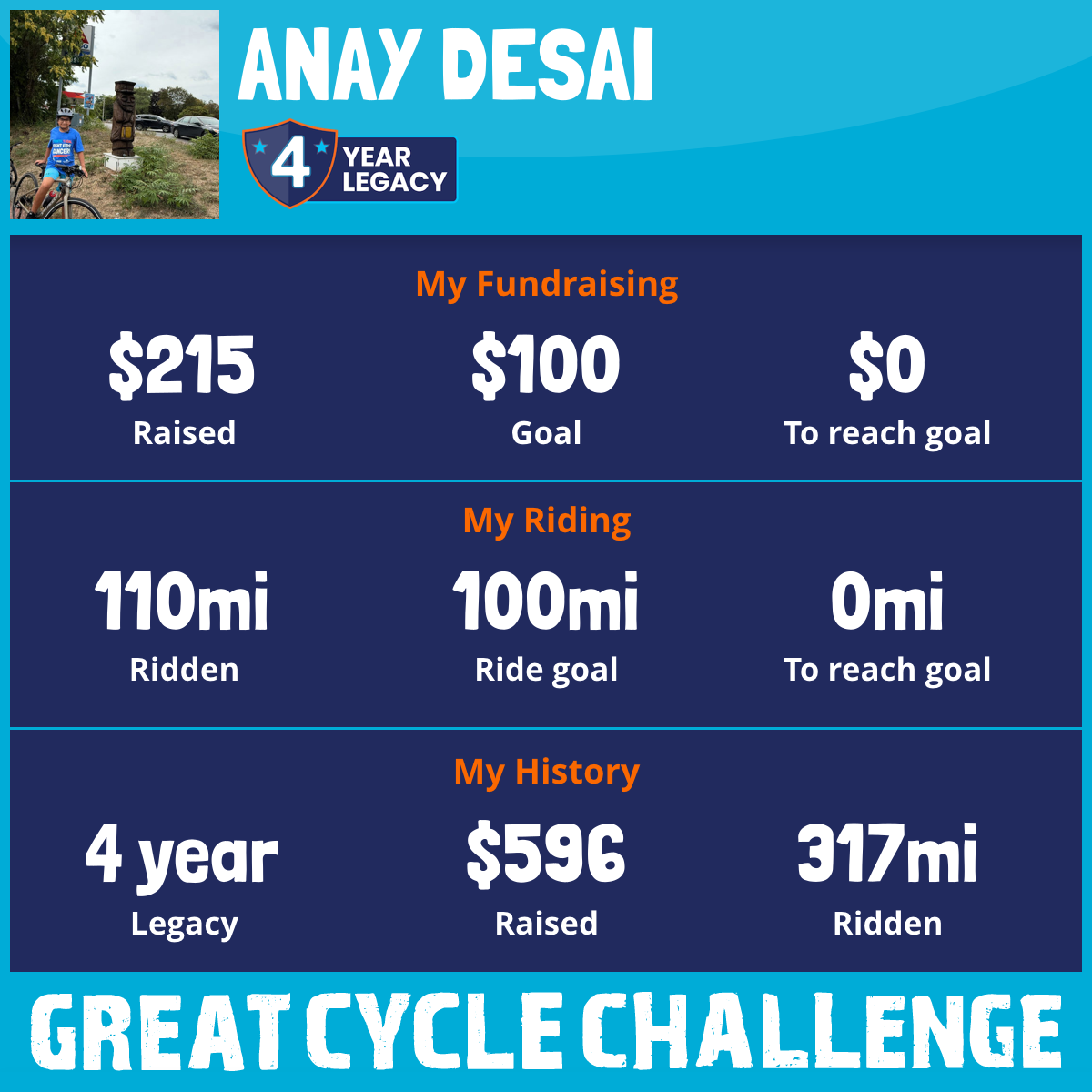 I will be cycling 100+ miles to support the fight against cancer and help save young lives. This cause is deeply meaningful to me, and I am reaching out to ask for your support. Together, we can make a lasting impact!!