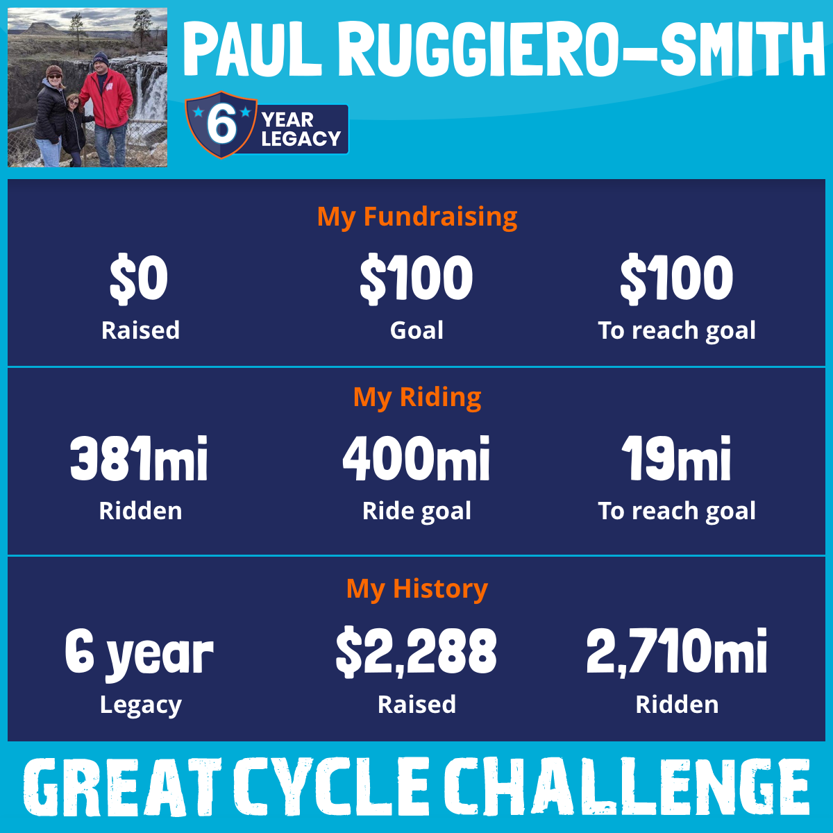 I am riding 400 mi in memory of Kevin Hess and Frank Smith. Please sponsor me and support my challenge to fight kids' cancer and save little lives.