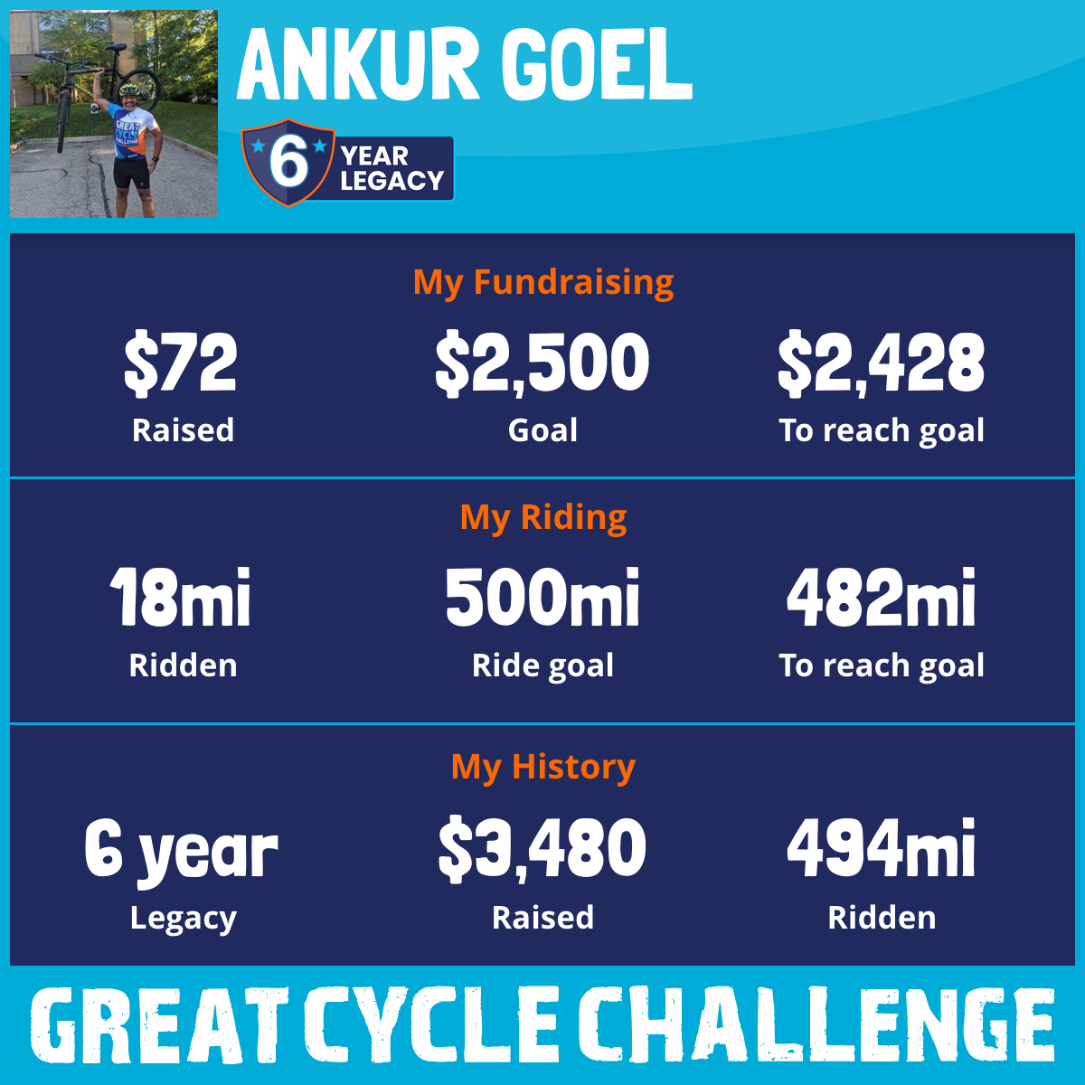 I am riding 500 mi in memory of my mum, Sharan Lata Goel. Please sponsor me and support my challenge to fight kids' cancer and save little lives.