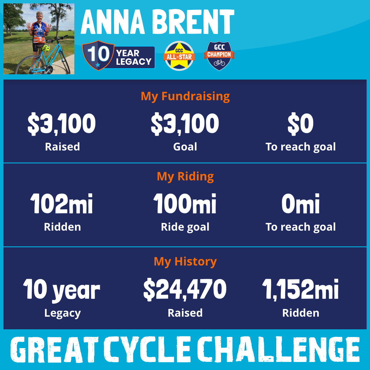 This September, I am taking part in the Great Cycle Challenge to fight kids' cancer! This will be my 11th year!