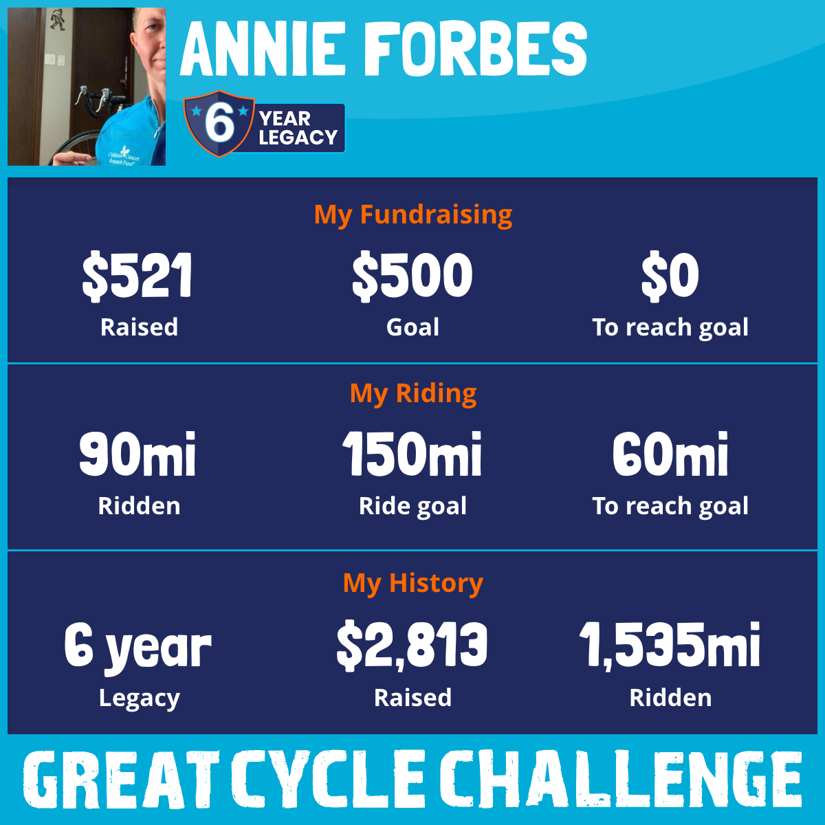 So I am raising funds through my challenge to help these kids and support Children's Cancer Research Fund to allow them to continue their work to develop lifesaving treatments and find a cure for childhood cancer.