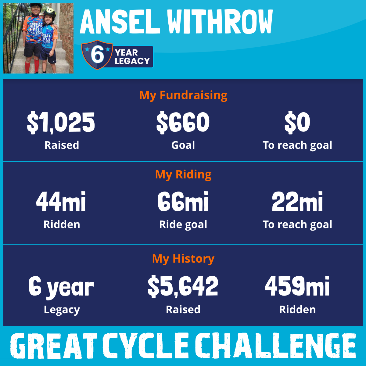 This September, I am taking part in my 6th Great Cycle Challenge to fight kids' cancer! My goal is to ride 66mi and raise $660 for the CCRF!
