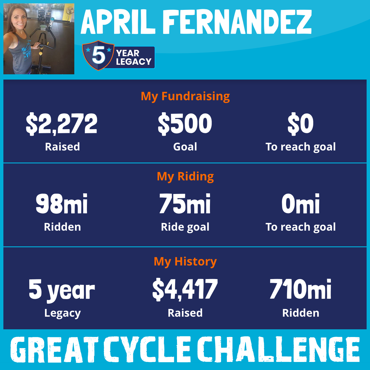 98 mi Ridden$2,272 Raised2025