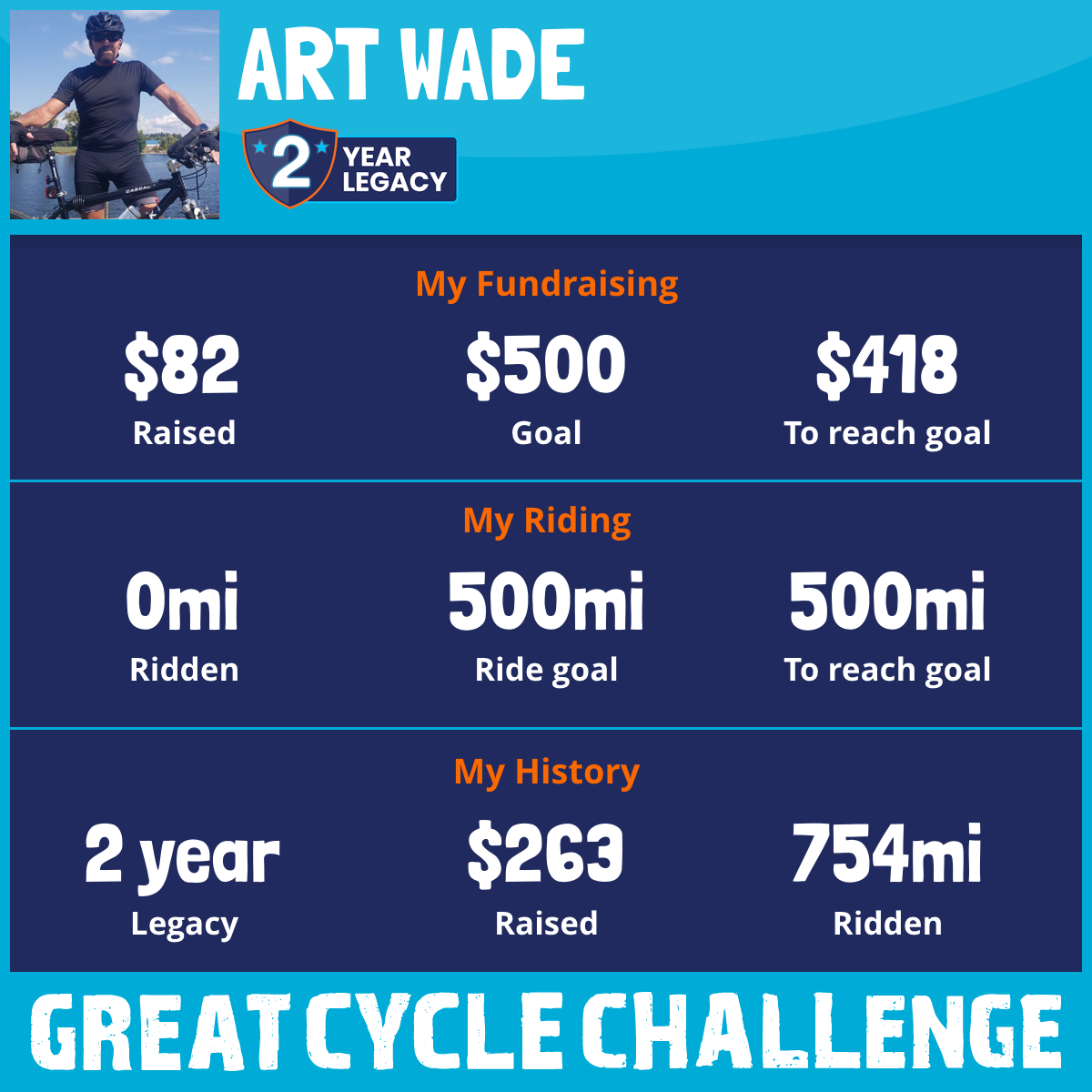 I am riding 500 mi for Dawn Torchia (Wade). Please sponsor me and support my challenge to fight kids' cancer and save little lives.