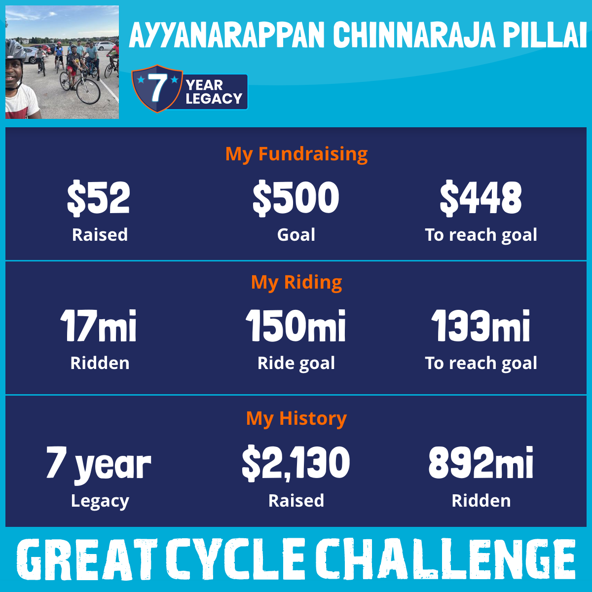 I am riding 150 mi to fight kids' cancer and save little lives. Please sponsor me to support my challenge!