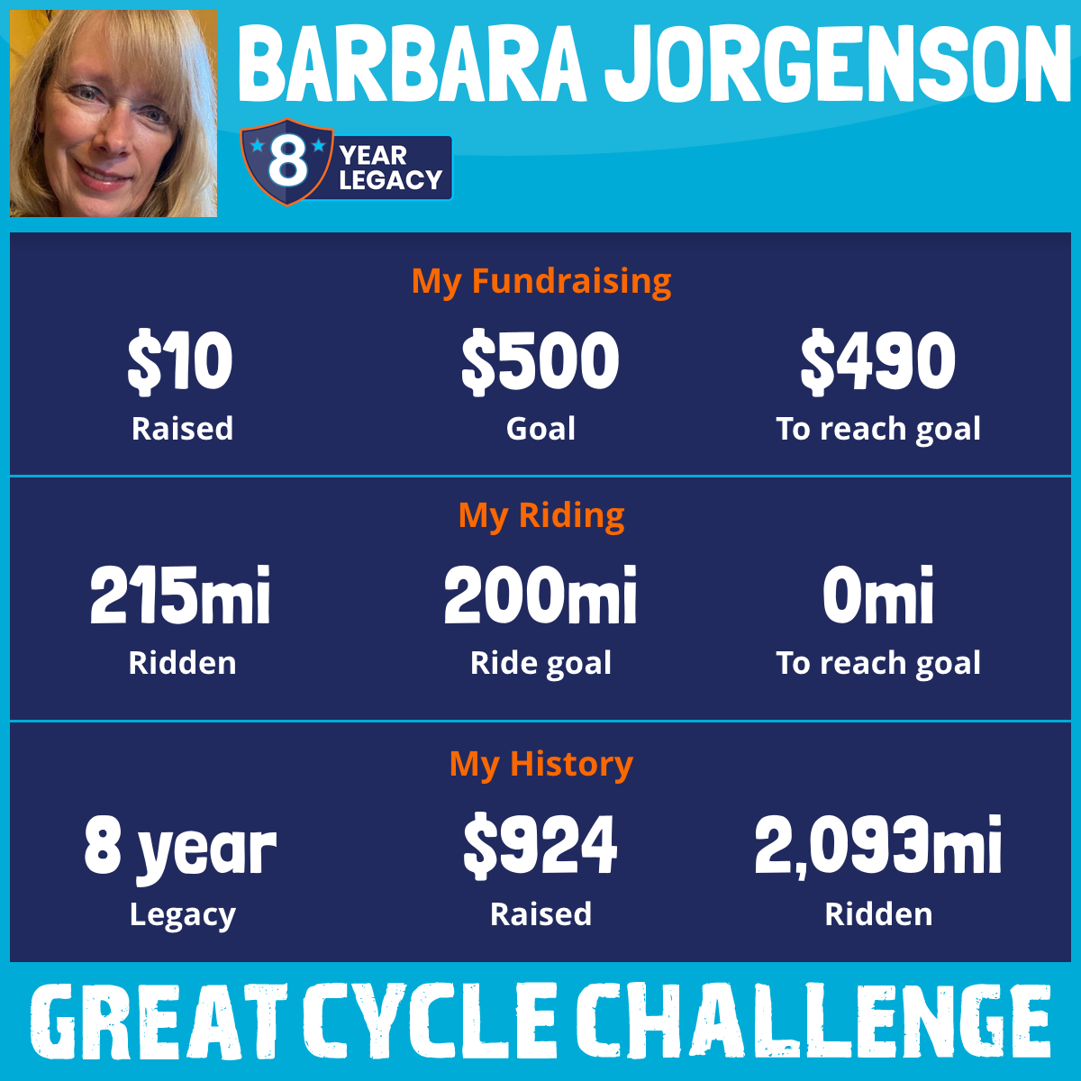 I am riding 200 mi in memory of Riding for all who suffer from cancer. Please sponsor me and support my challenge to fight kids' cancer and save little lives.