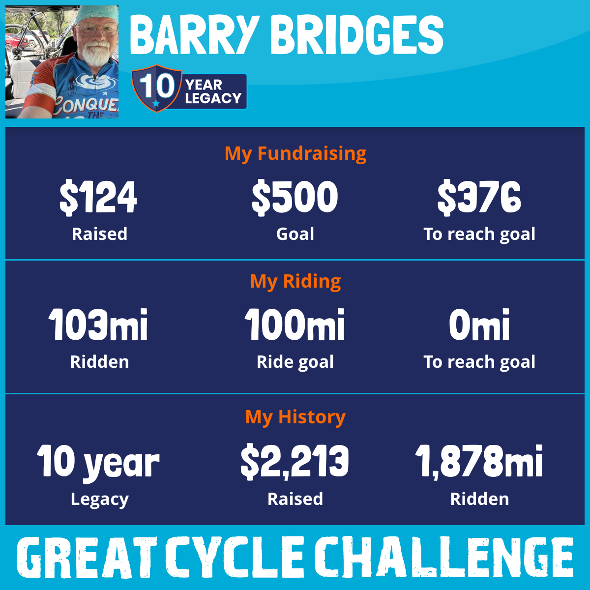 My son Brent came home from his work as a firefighter and challenged me to give to support The Little Fighter in his battle with kidney cancer. Four years later The Little Fighter supported my son in his battle with colon cancer. Today, Reid is a survivor! For a few years he was the face of Children's Cancer at the hospital where he received his treatment. This year he turned 17. I keep riding each year to honor this fellow and the way he is paving for others.