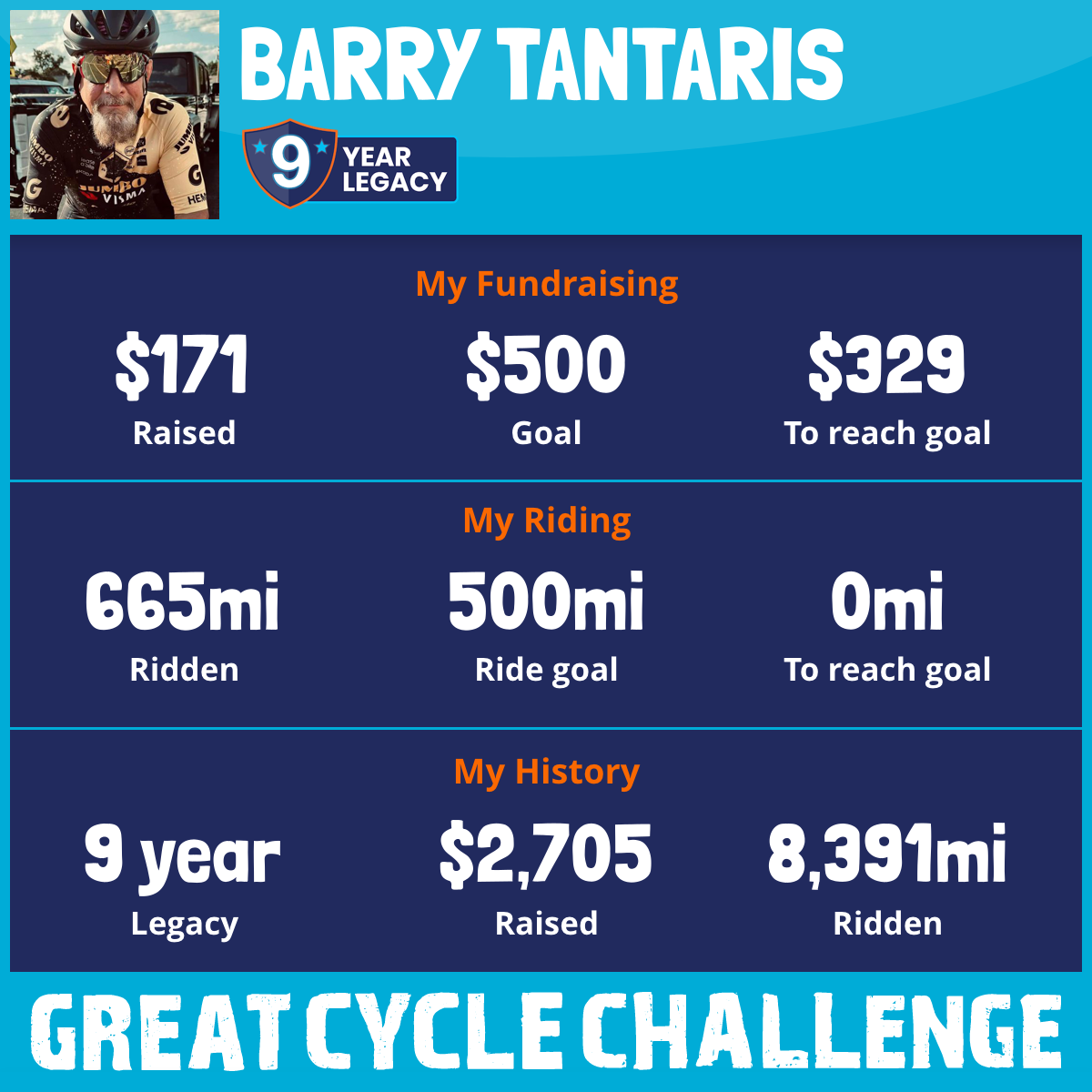 I am riding 500 mi in memory of Ilalouise Roderick Tantaris. Please sponsor me and support my challenge to fight kids' cancer and save little lives.