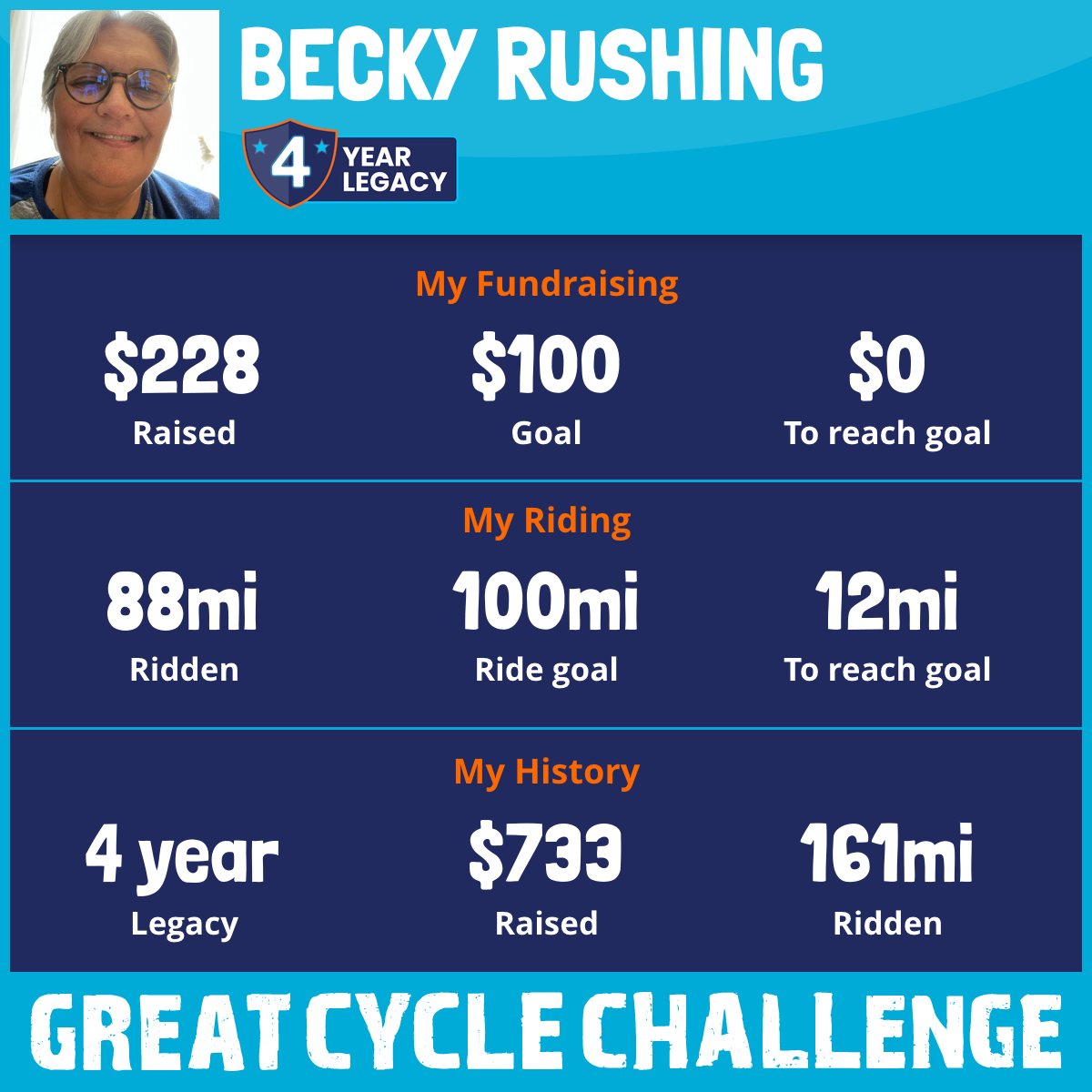 I am riding 100 mi in memory of There are several family members that have or had cancer. Please sponsor me and support my challenge to fight kids' cancer and save little lives.