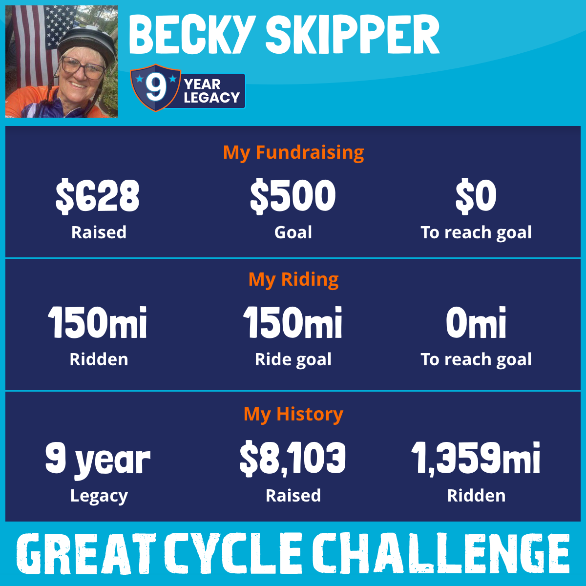 I’m also riding is honor of Jade, Jada, Gary, Paul, Raven, Presley, Theda, Tracy, Stephen O., and Evangeline.