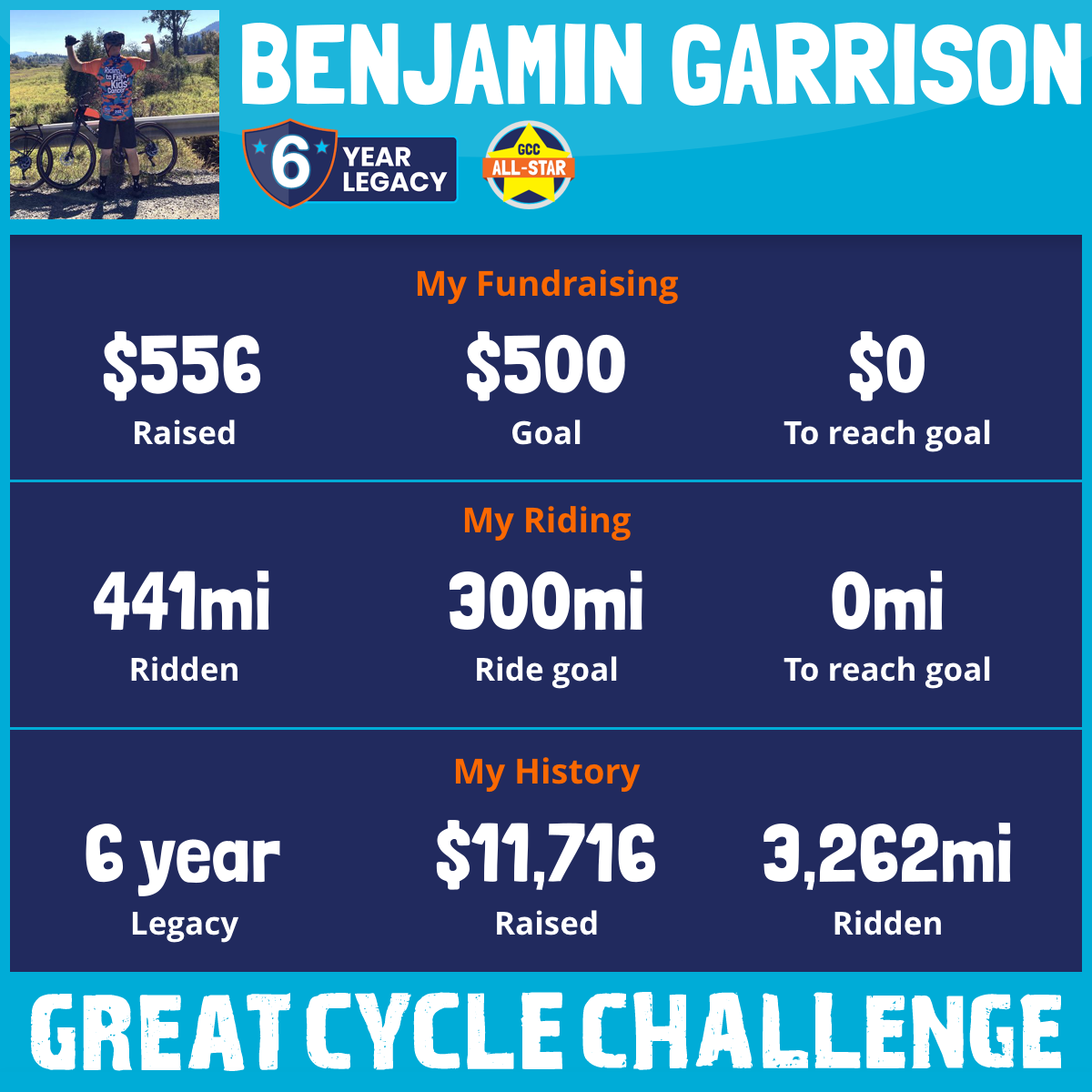 HELLO FRIENDS!! The 2025 Great Cycle Challenge starts September 1st and for the 6th year I will be riding to help support the fight against kids' cancer!
