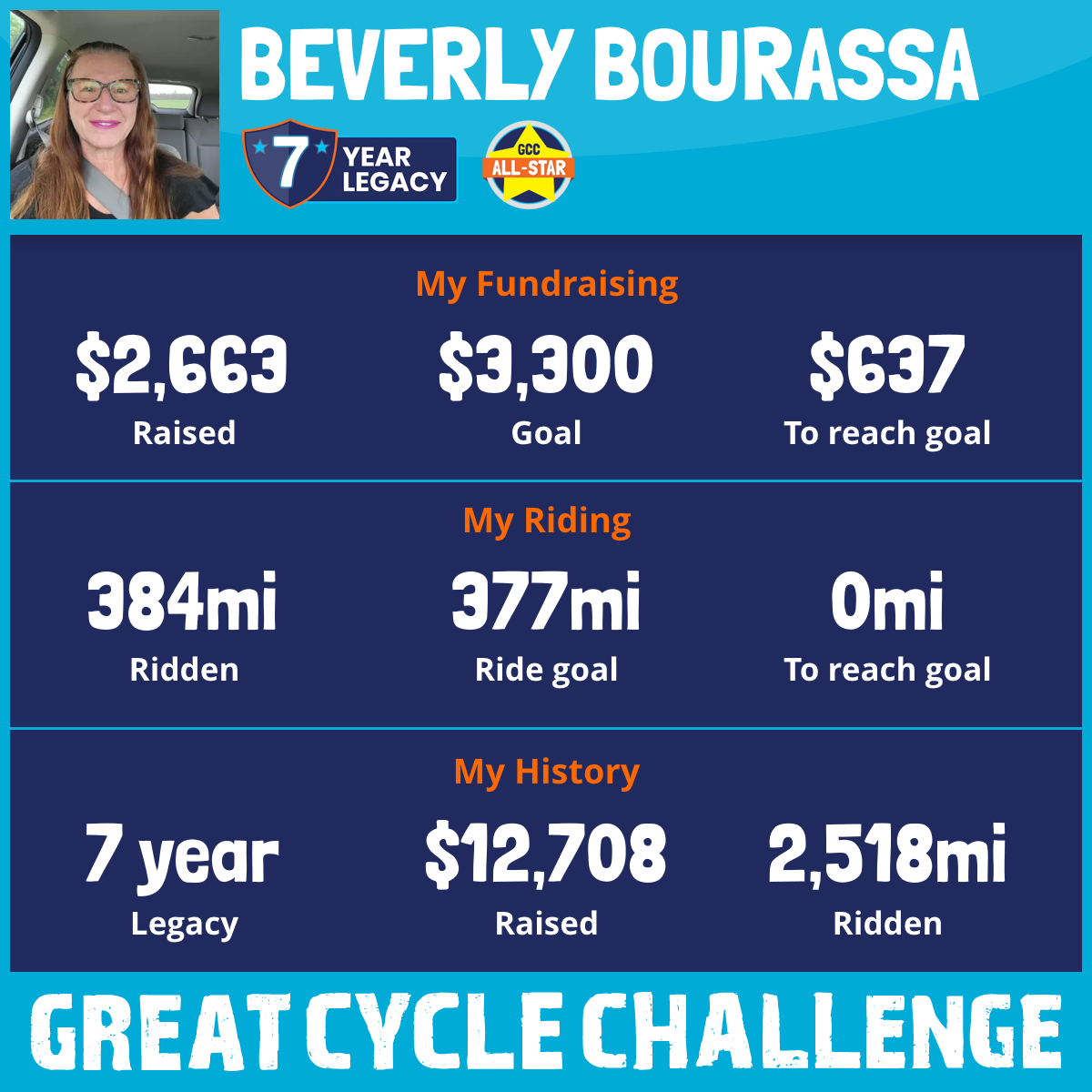 We support our dear friend Beverly in her goal to conquer Childhood Cancer.