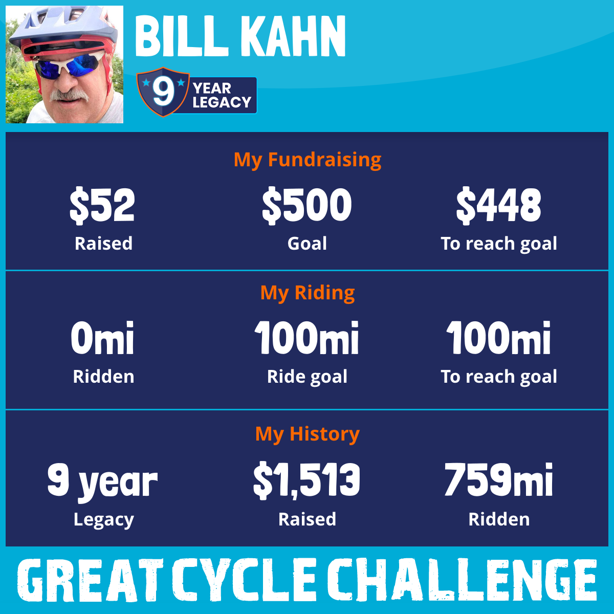 2025 will be my 9th year participating in the Great Cycle Challenge. I'll be riding this September to fight kids' cancer! My goal is to pedal 100 miles throughout the month, most - if not all - will be "off-road", on single-track mountain bike trails.