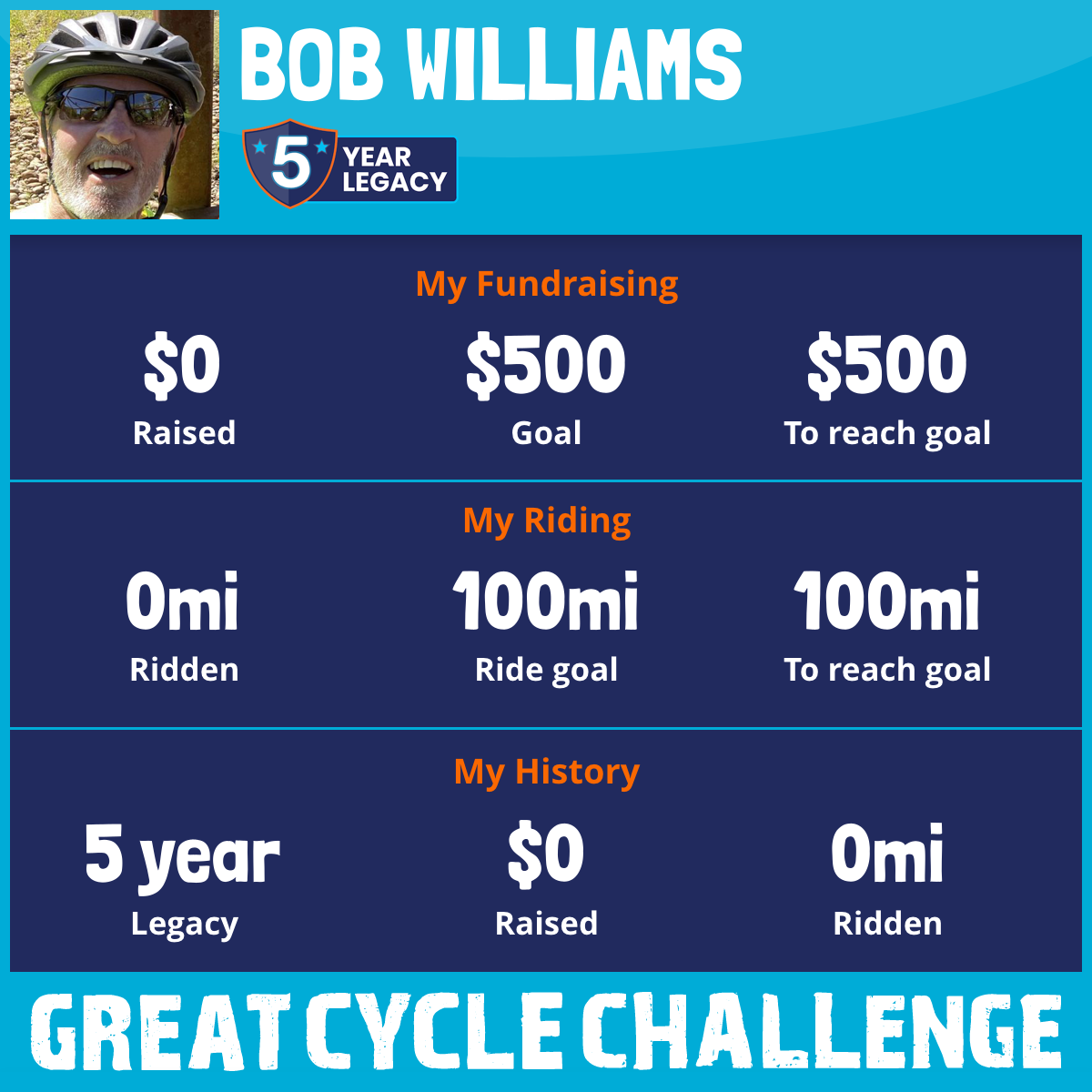 I am riding 100 mi for my friend, Bill. Please sponsor me and support my challenge to fight kids' cancer and save little lives.