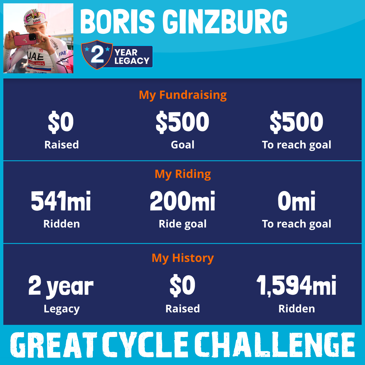 I am riding 200 mi for my aunty, Sofia. Please sponsor me and support my challenge to fight kids' cancer and save little lives.