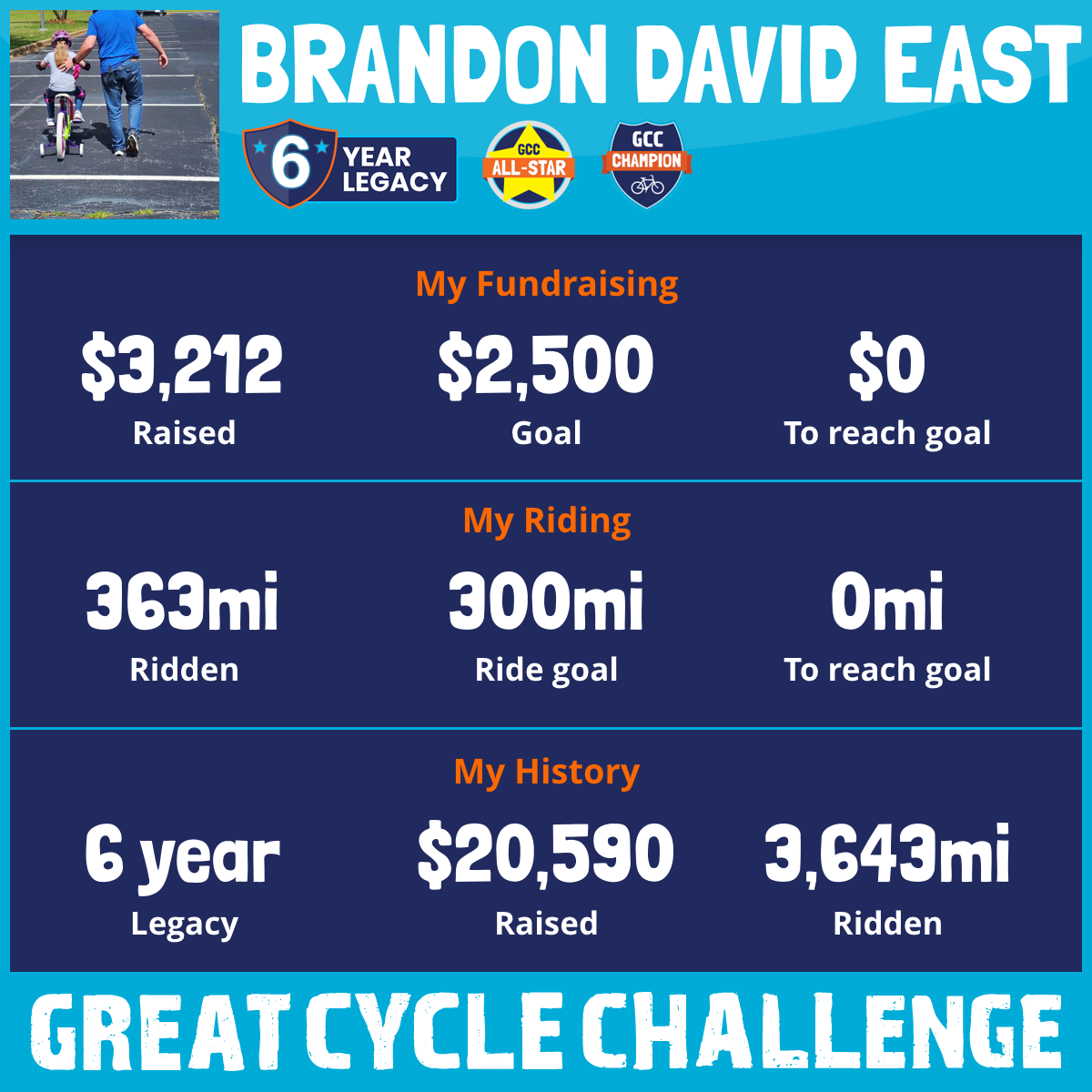 It's 2026 and I am continuing to raise awareness and more donations, if possible, for Children's Cancer Research through the Great Cycle Challenge!!
