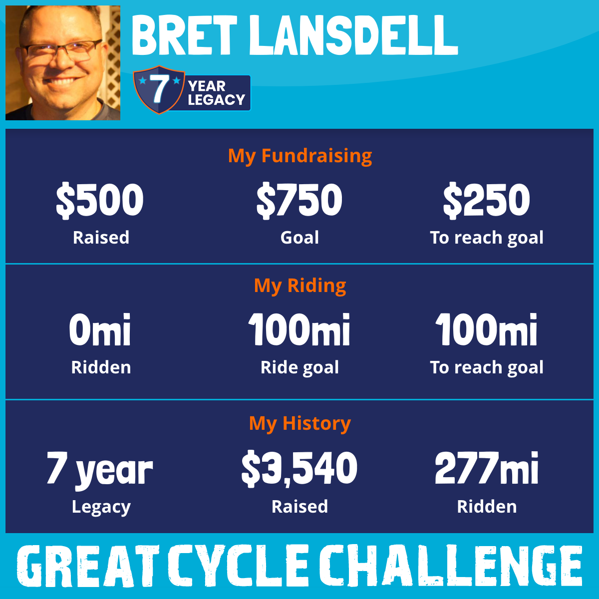 Last year, I biked 100 miles, and over the last 4 years you helped me raise over $3000 to fight the good fight. Let's get there again this year! I hope to ride another 100, so now help me get to my fundraising total of at least $1000!