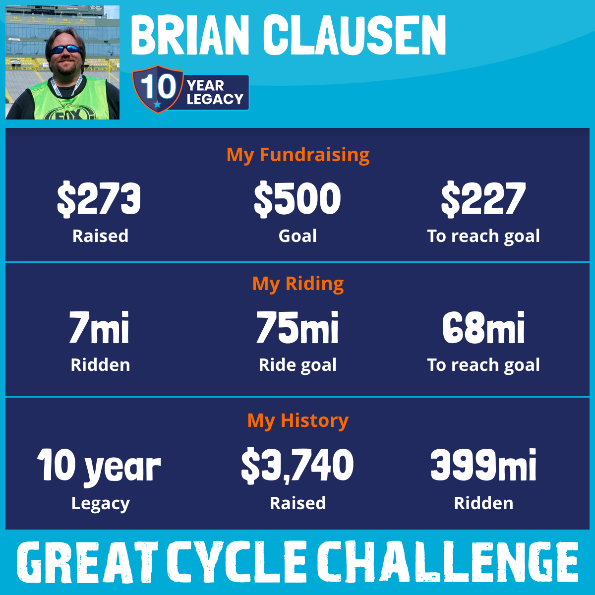 This September, I am taking part in the Great Cycle Challenge to fight kids' cancer! AGAIN! This will be my seventh year of riding to Kick Cancer's Butt! I am having difficulties with my knees, but I will push through for a lower goal of 75 miles this year!