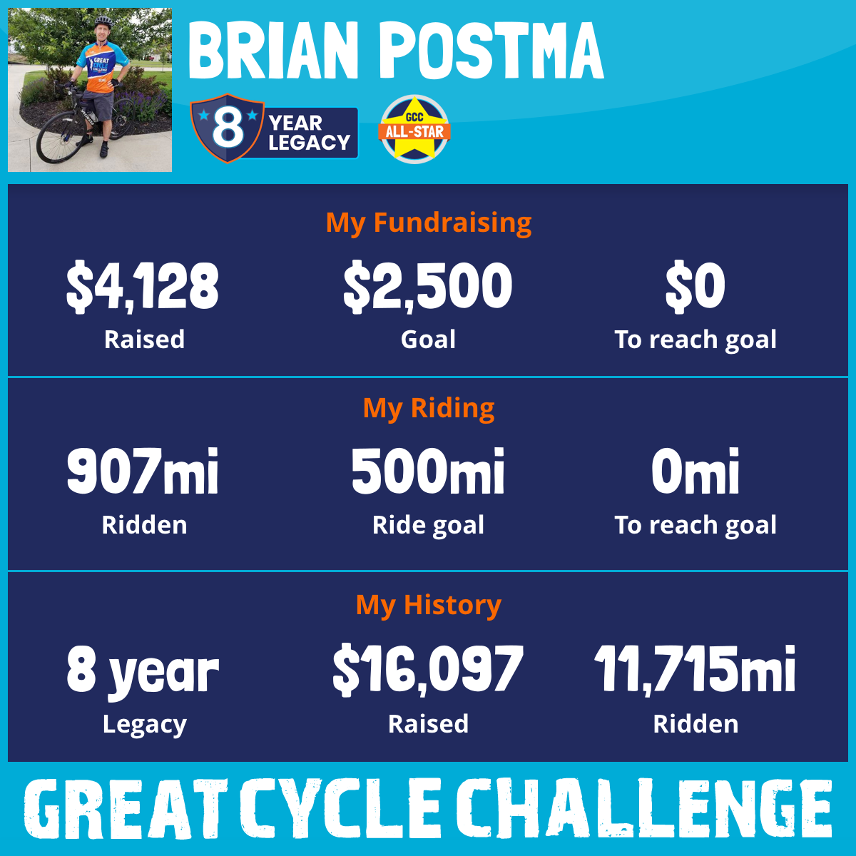 907 mi Ridden$4,128 Raised2025