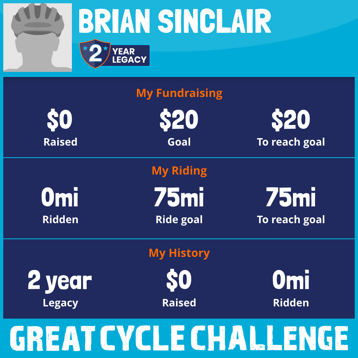 I am riding 75 mi for my myself, Brian. Please sponsor me and support my challenge to fight kids' cancer and save little lives.