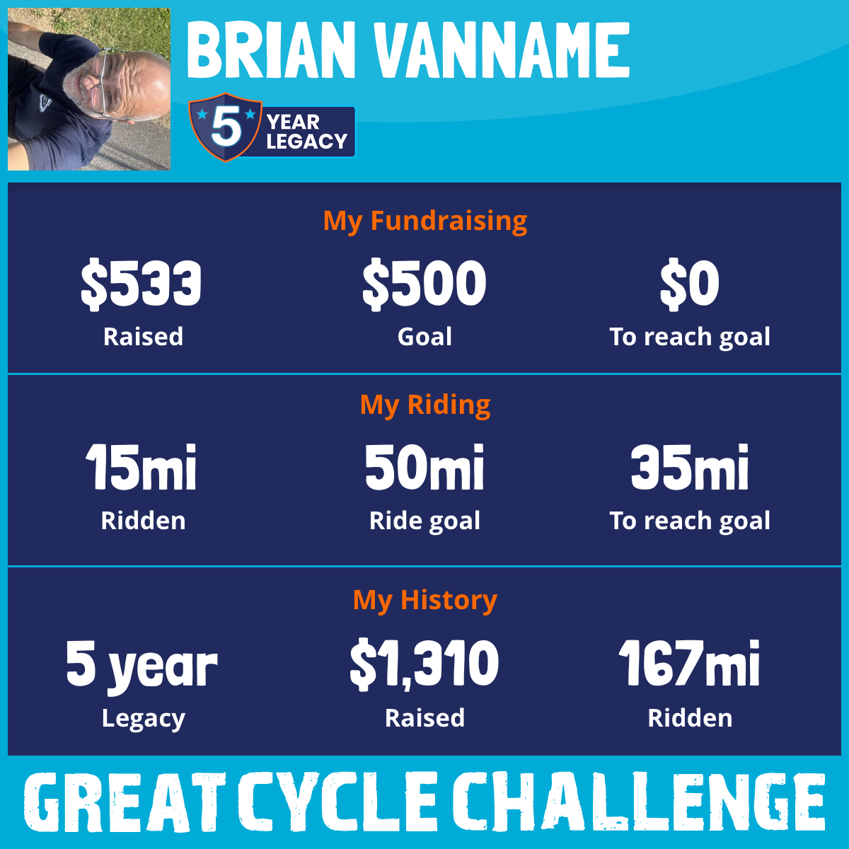 14 Sep 2025Just logged another Ride of 4 more miles and will be logging a bunch more on Tuesday 9/16 but thanks to some awesome Donors on and after Kick Cancers Butt Day with the matching Donations and my donation we have already knocked the Donation goal out beating the total donations of last year with time to go still in this month ! Thank you to those who have donated and who will donate before the end of the month !