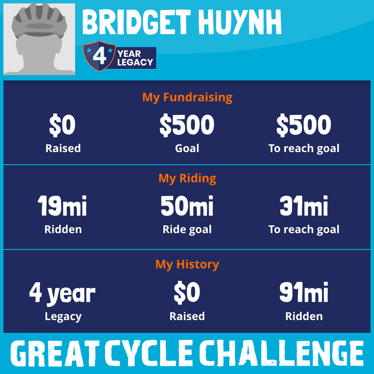 I am riding 50 mi to fight kids' cancer and save little lives. Please sponsor me to support my challenge!