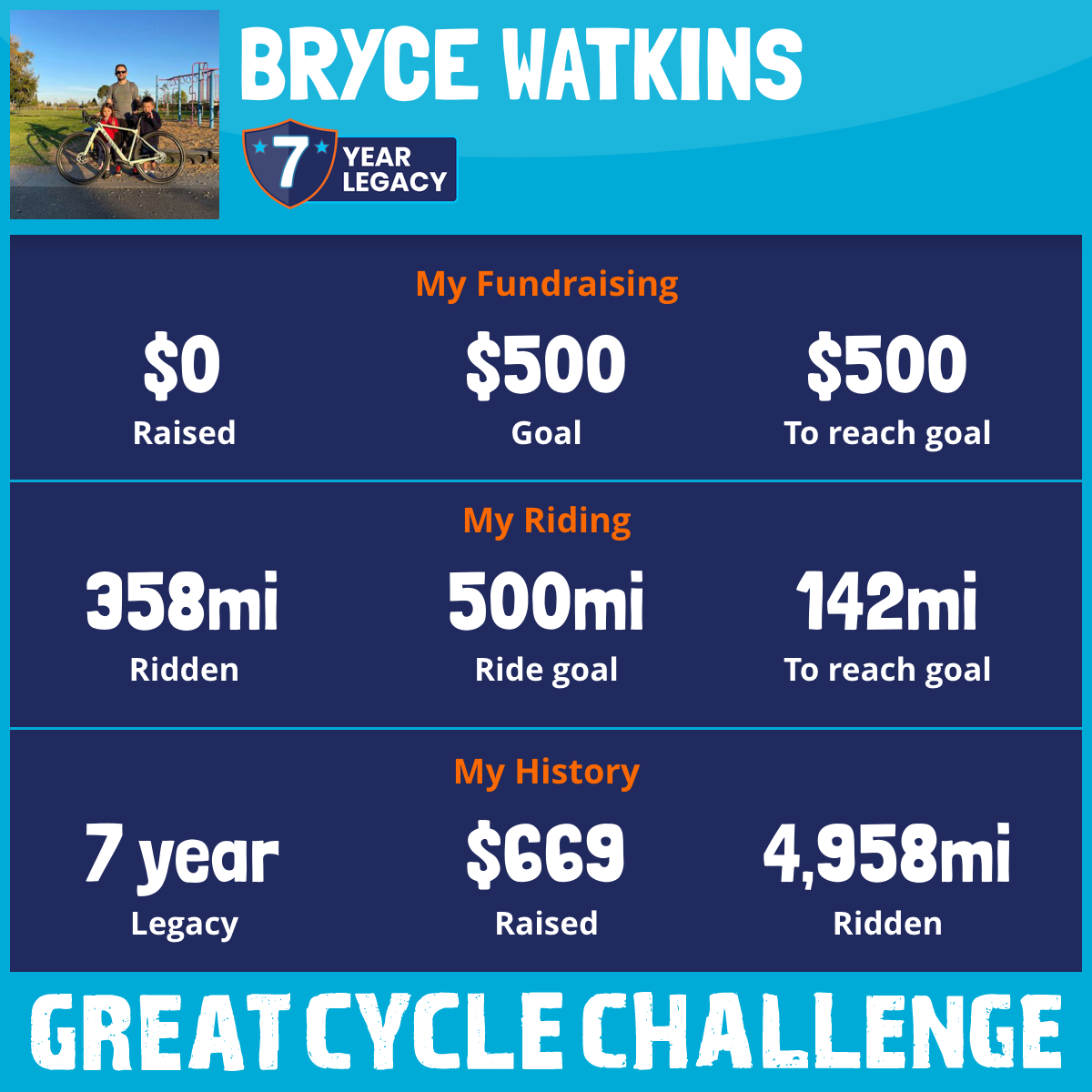 I am riding 500 mi for Cindy. Please sponsor me and support my challenge to fight kids' cancer and save little lives.
