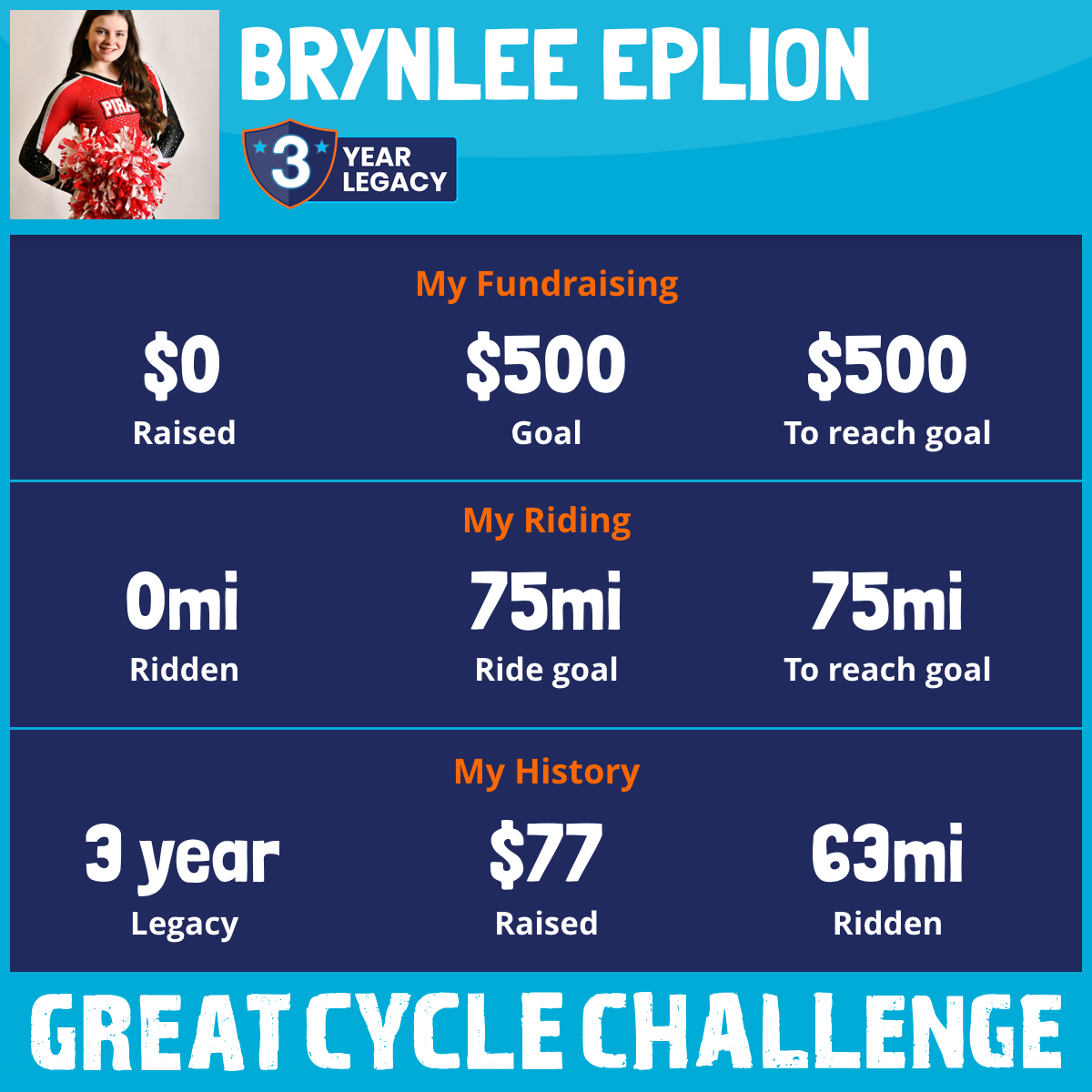 I am riding 75 mi for Chloe Hightower. Please sponsor me and support my challenge to fight kids' cancer and save little lives.