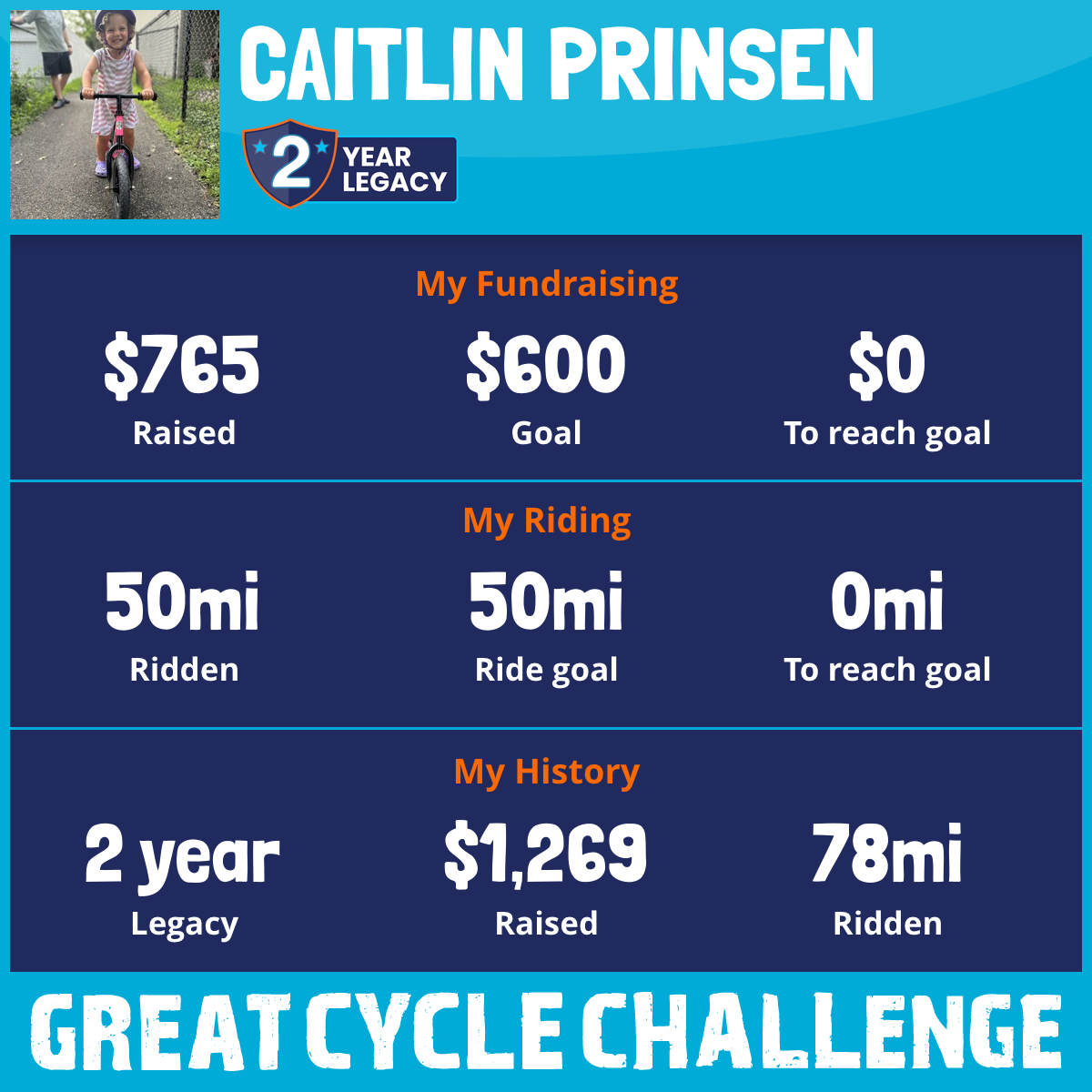 50 mi Ridden$765 Raised2025