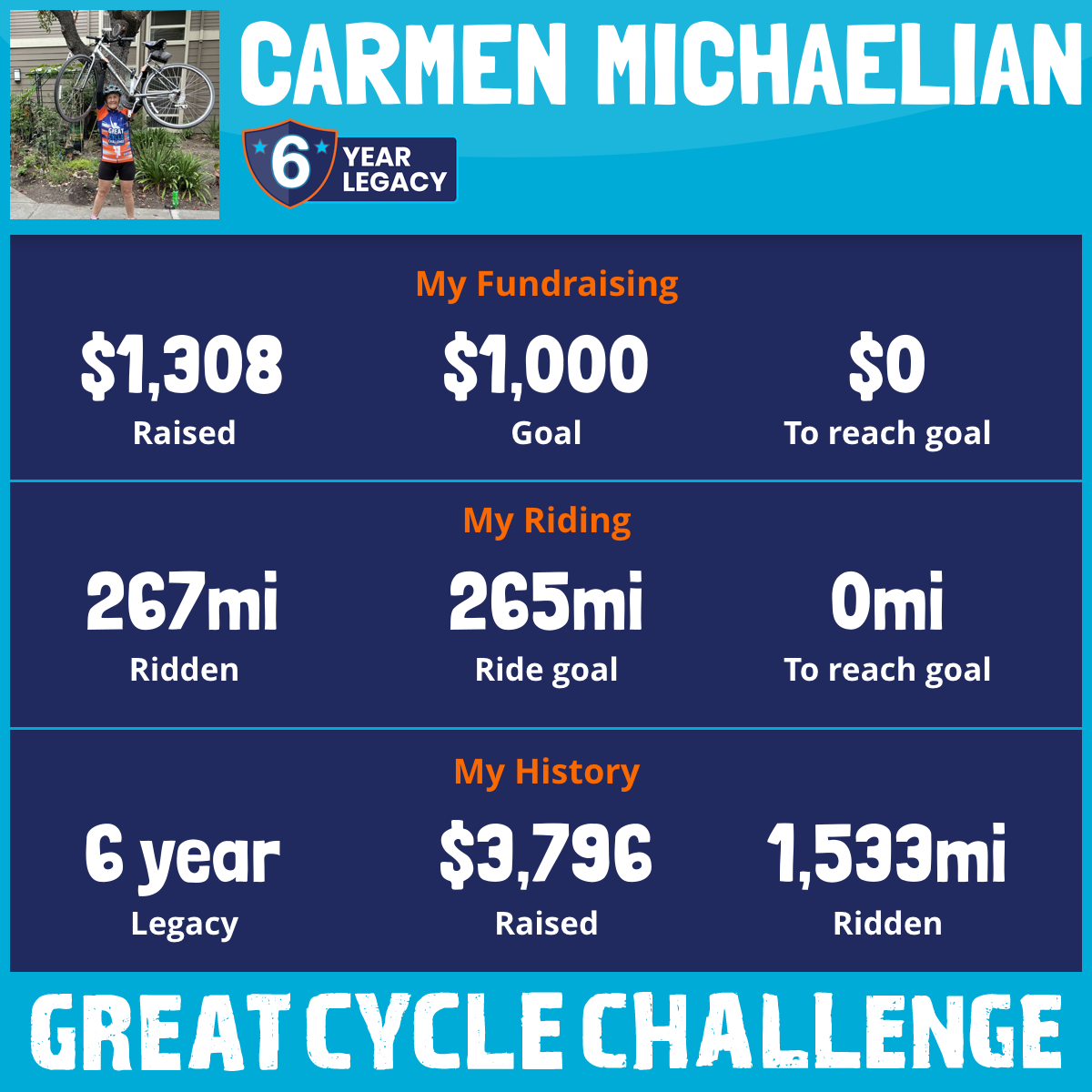 267 mi Ridden$1,308 Raised2025