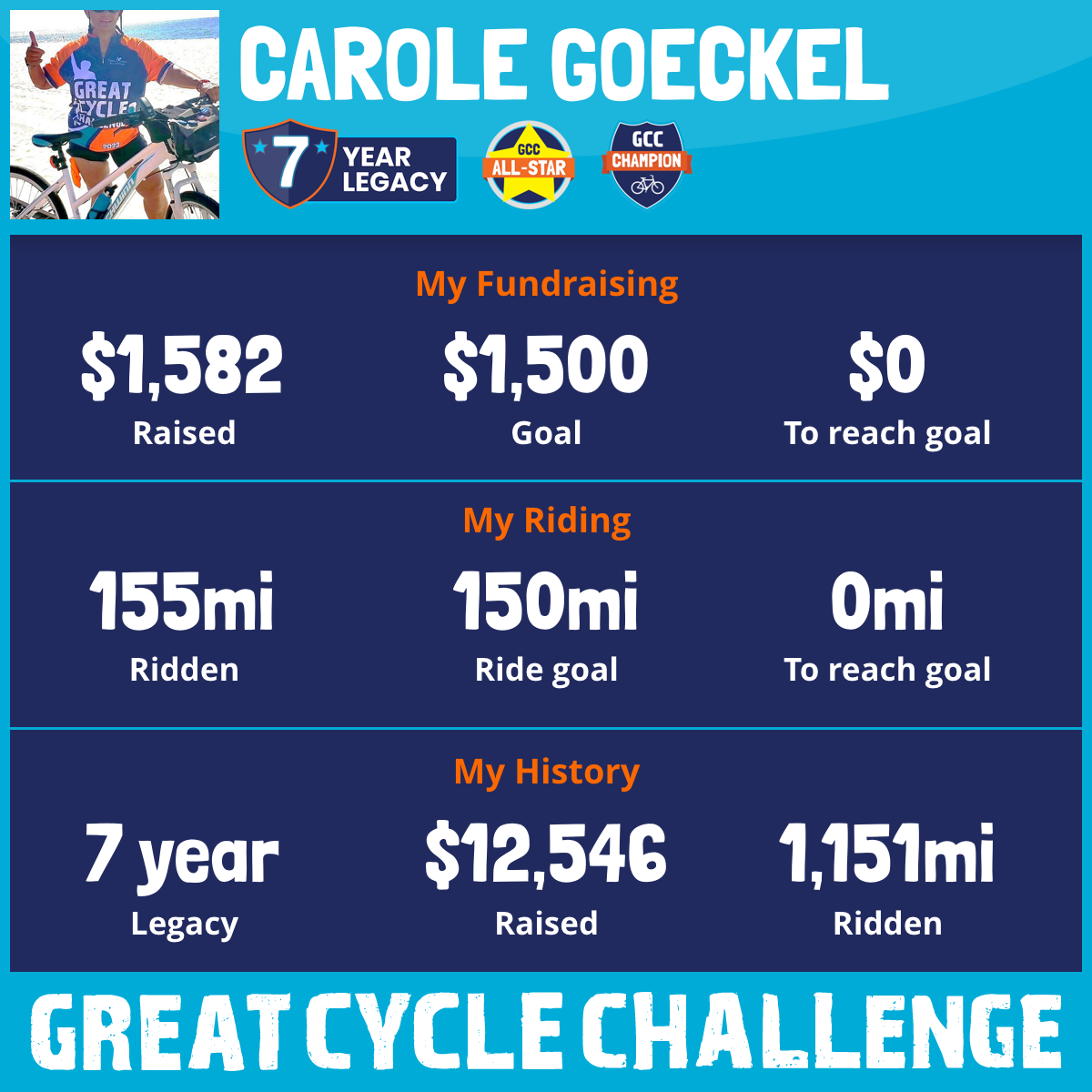 155 mi Ridden$1,582 Raised2025