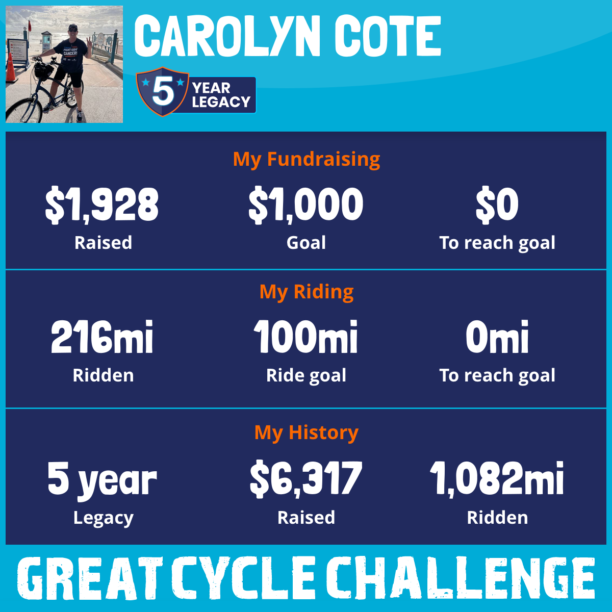 216 mi Ridden$1,928 Raised2025
