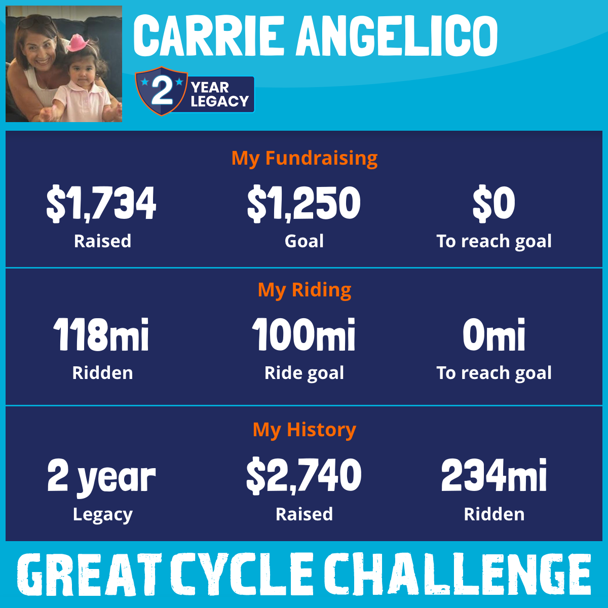I am riding 100 mi in September for all the brave children and families fighting cancer. Please sponsor me to support my challenge and save little lives.