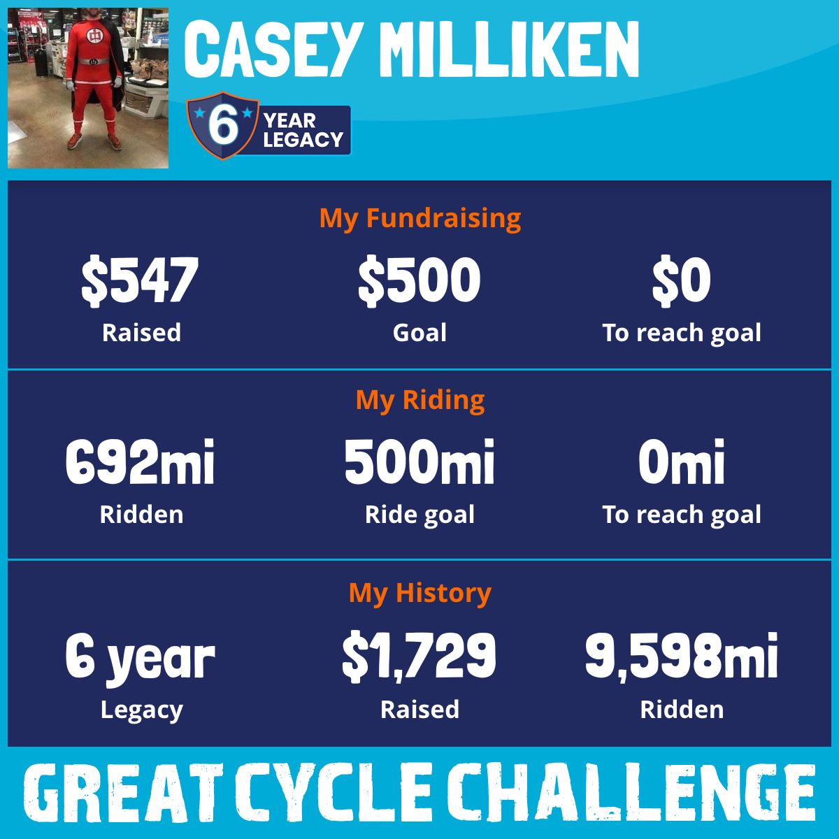 I am riding 500 mi in memory of my friend, Declan McCombs. Please sponsor me and support my challenge to fight kids' cancer and save little lives.