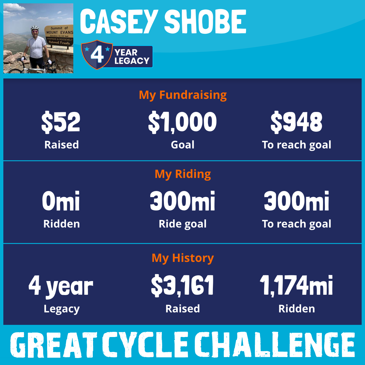I am riding 300 mi in memory of Harrison. Please sponsor me and support my challenge to fight kids' cancer and save little lives.