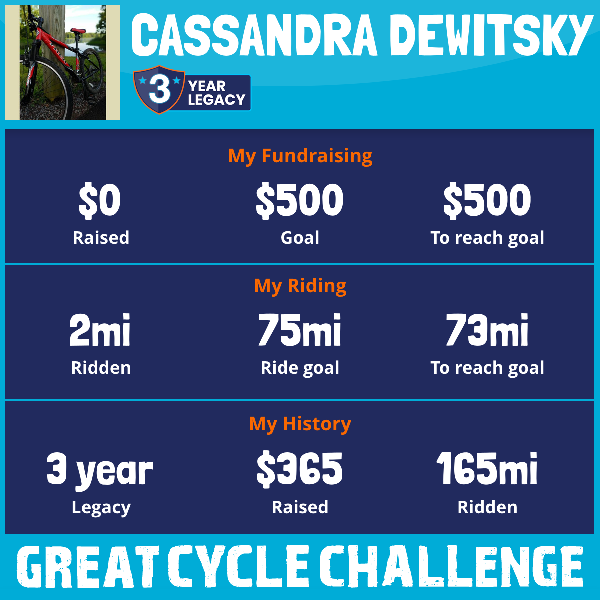 I am riding 75 mi to fight kids' cancer and save little lives. Please sponsor me to support my challenge!