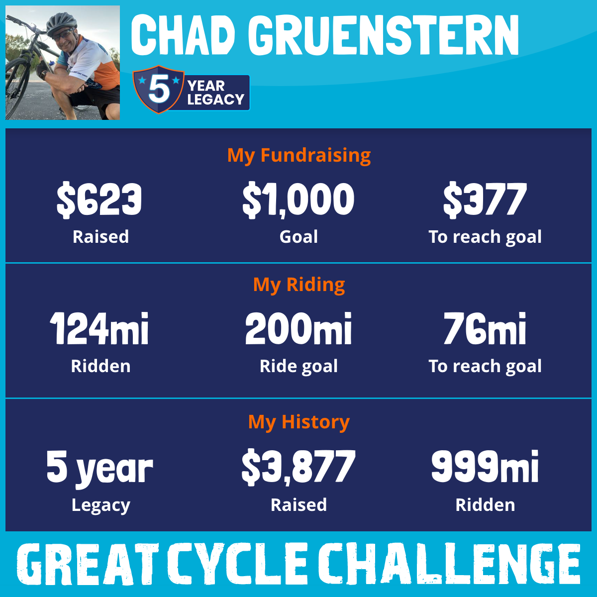 301 mi Ridden$1,023 Raised2021