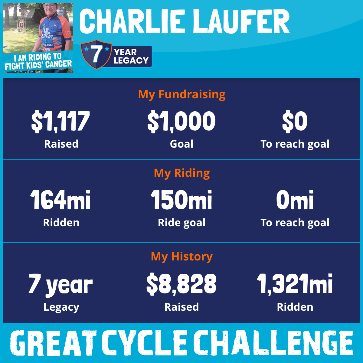168 mi Ridden$1,117 Raised2025