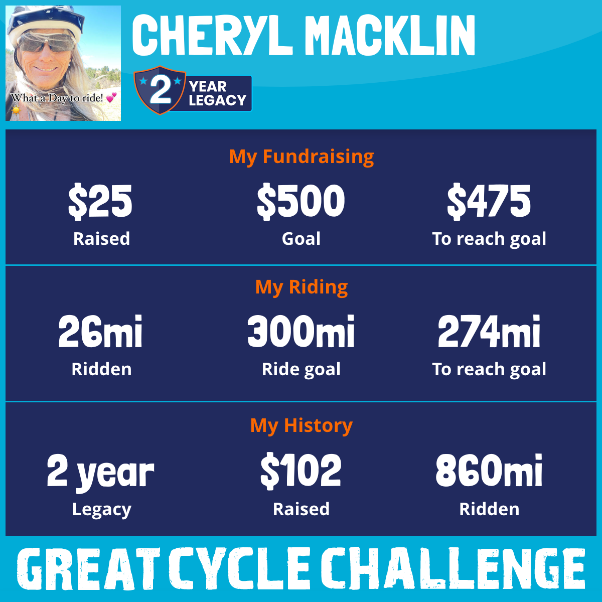 I am riding 1300mi to fight kids' cancer and save little lives. Please sponsor me to support my challenge!