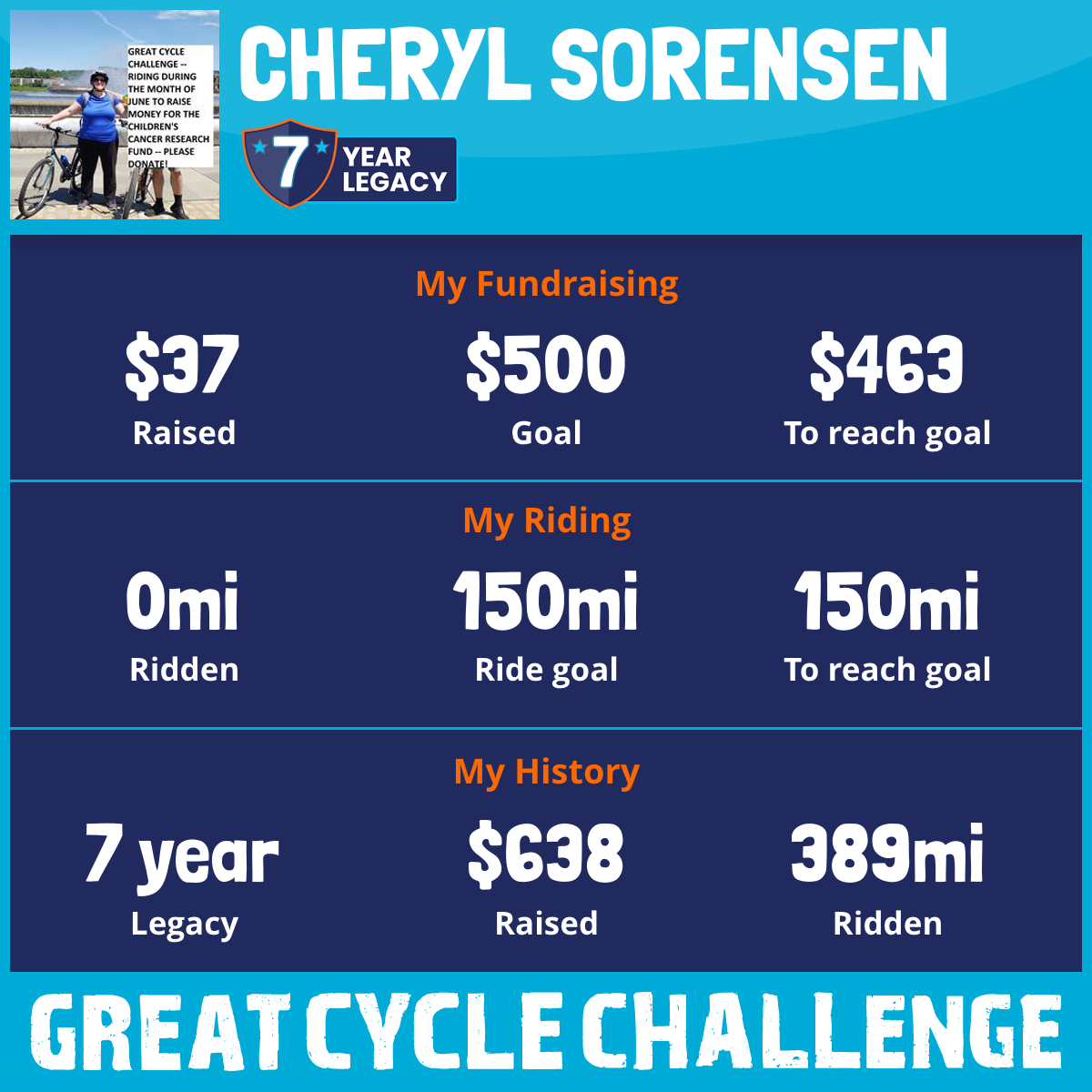 I am riding 150 mi in memory of B&B. Please sponsor me and support my challenge to fight kids' cancer and save little lives.