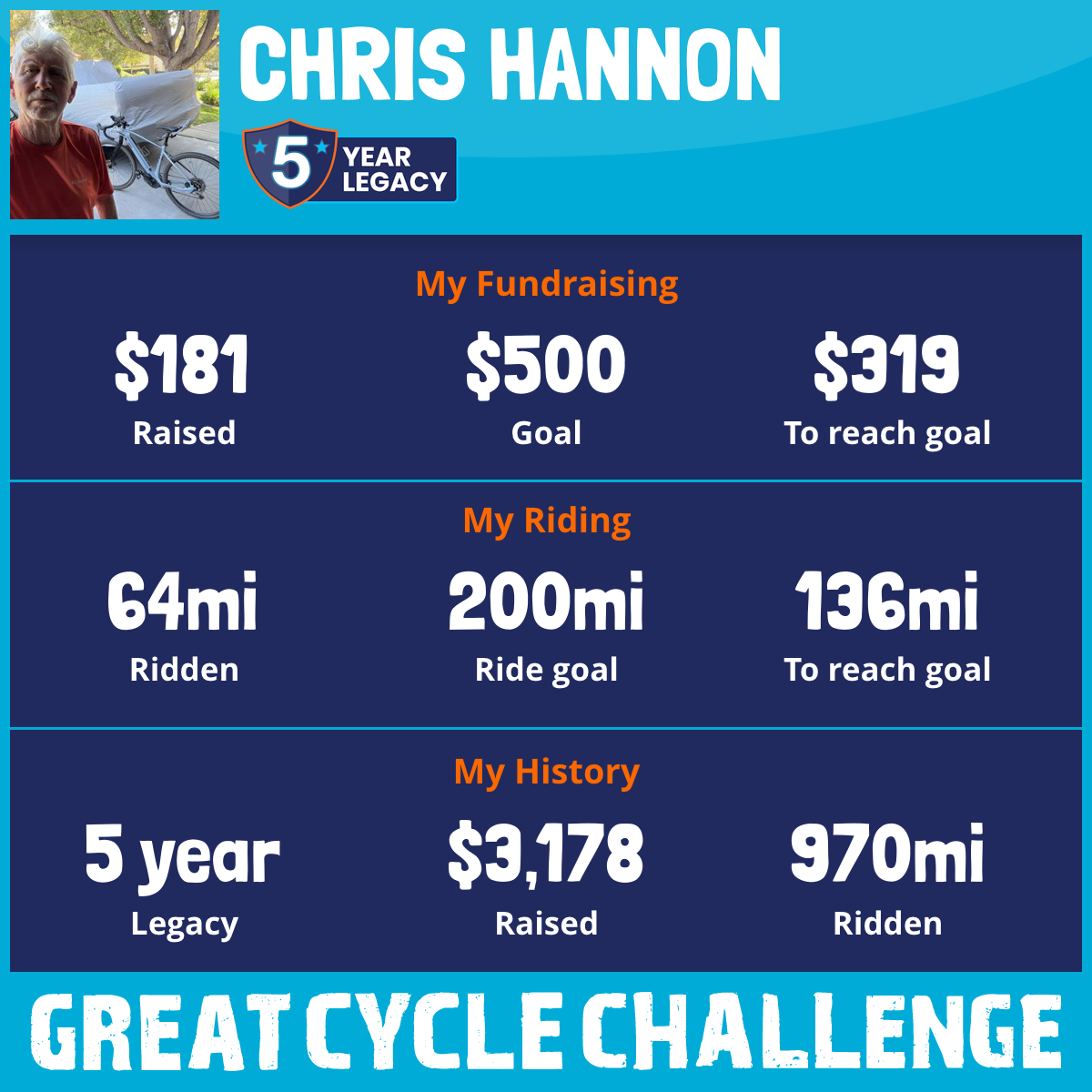 64 mi Ridden$181 Raised2025